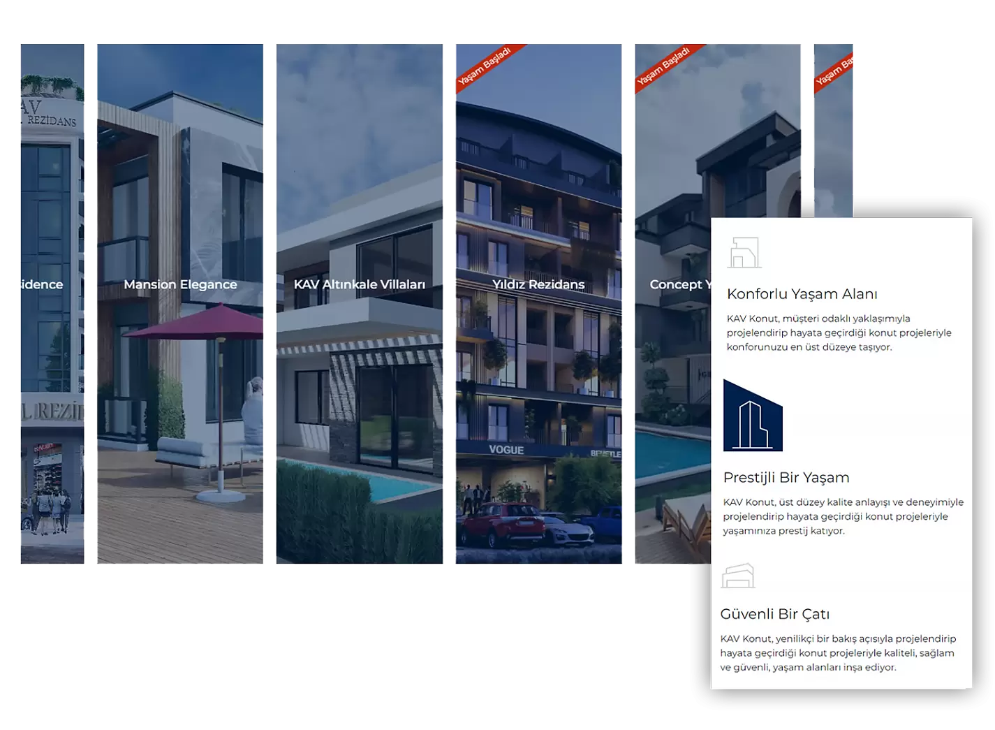 KAV Konut'un güçlü ve estetik projeleri web site tasarımımızla etkileyici bir şekilde dijitalde öne çıkıyor. Kullanıcılar, şık ve minimalist tasarımıyla dikkat çeken site üzerinden projelerin detaylarına anında ulaşarak projeler hakkında zengin bilgiler elde ediyorlar.
